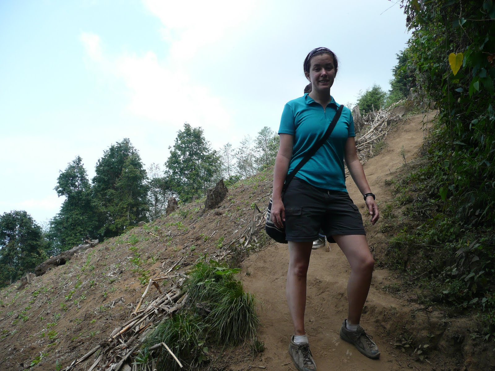 Amy with Volcan San Pedro, the volcano we climbed, in the background
